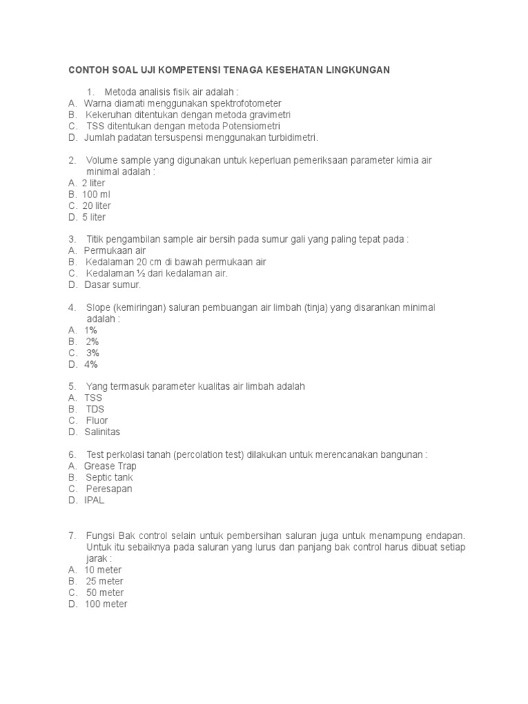 Contoh Soal Uji Kompetensi Tenaga Kesehatan Lingkungan Pdf